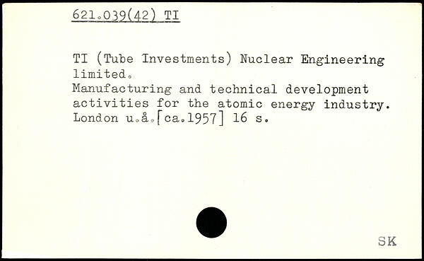 TI (Tube Investments) Nuclear Engineering limited., Manufacturing and technical development activities for the atomic energy industry. London UolL [ca.1957]