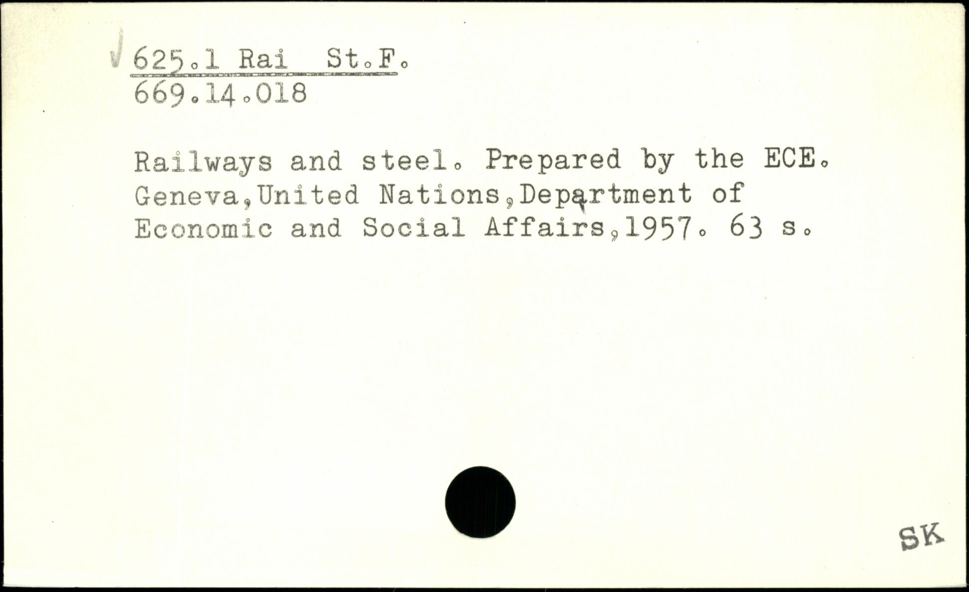 ll 625ol Hai StoFo 669.14o018 Railways and steel. Prepared "by the ECEo Geneva,United Nations9Dep^rtment of Economic and Social Affairs,1957