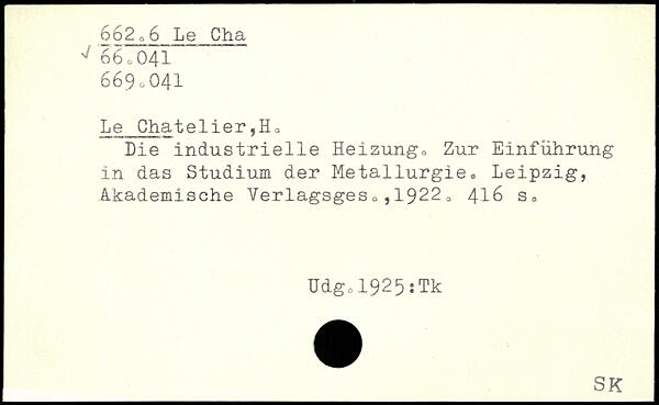 Le Chatelier,Ho Me industrielle Heizungo Zur Einführung in das Studium der Metallurgie, Leipzig, Akademische Yeriagsges,,19220