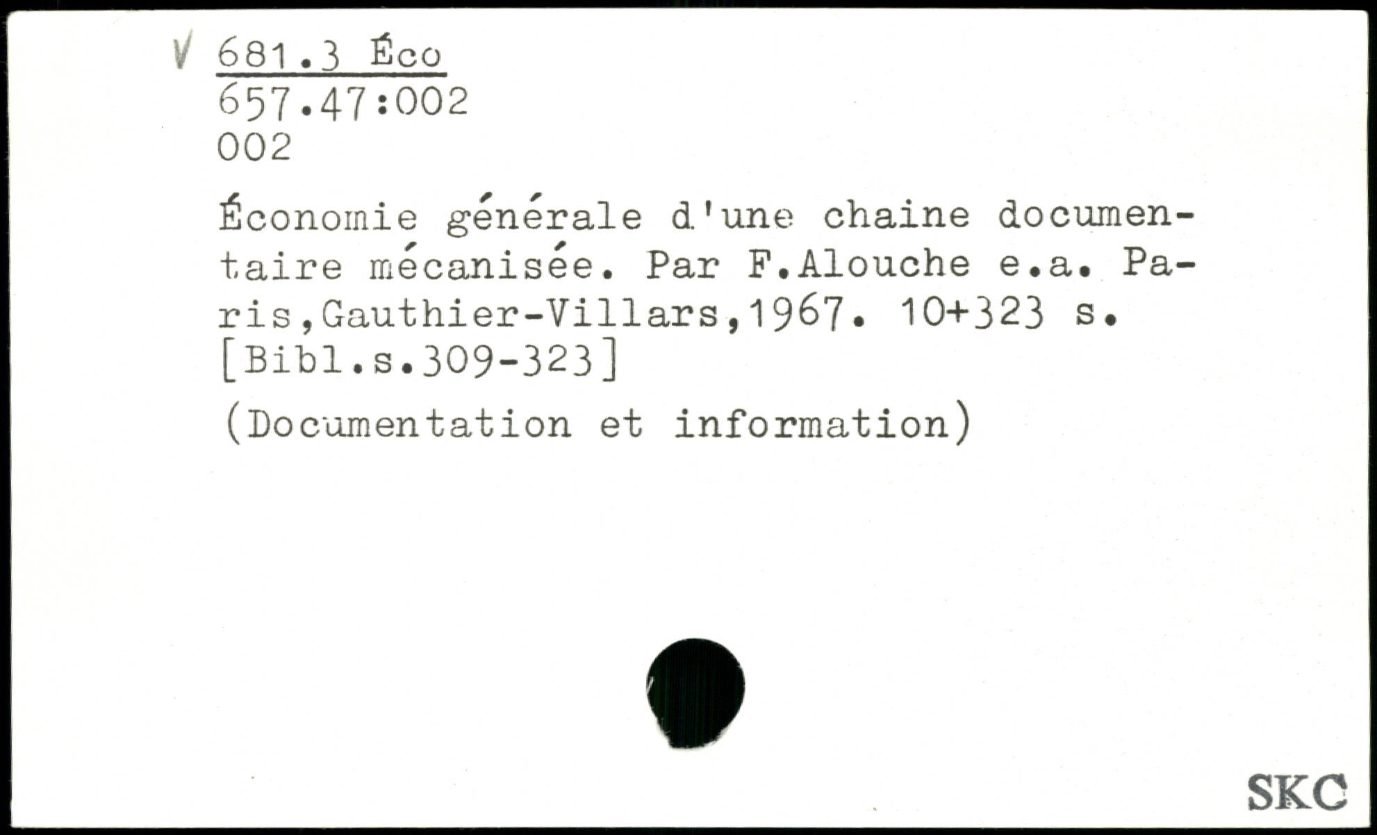 Économie générale d’une chaine documentaire mécanisée. Par F.Alouche e.a. Paris , Gauthier-Villars , 1 9^7.