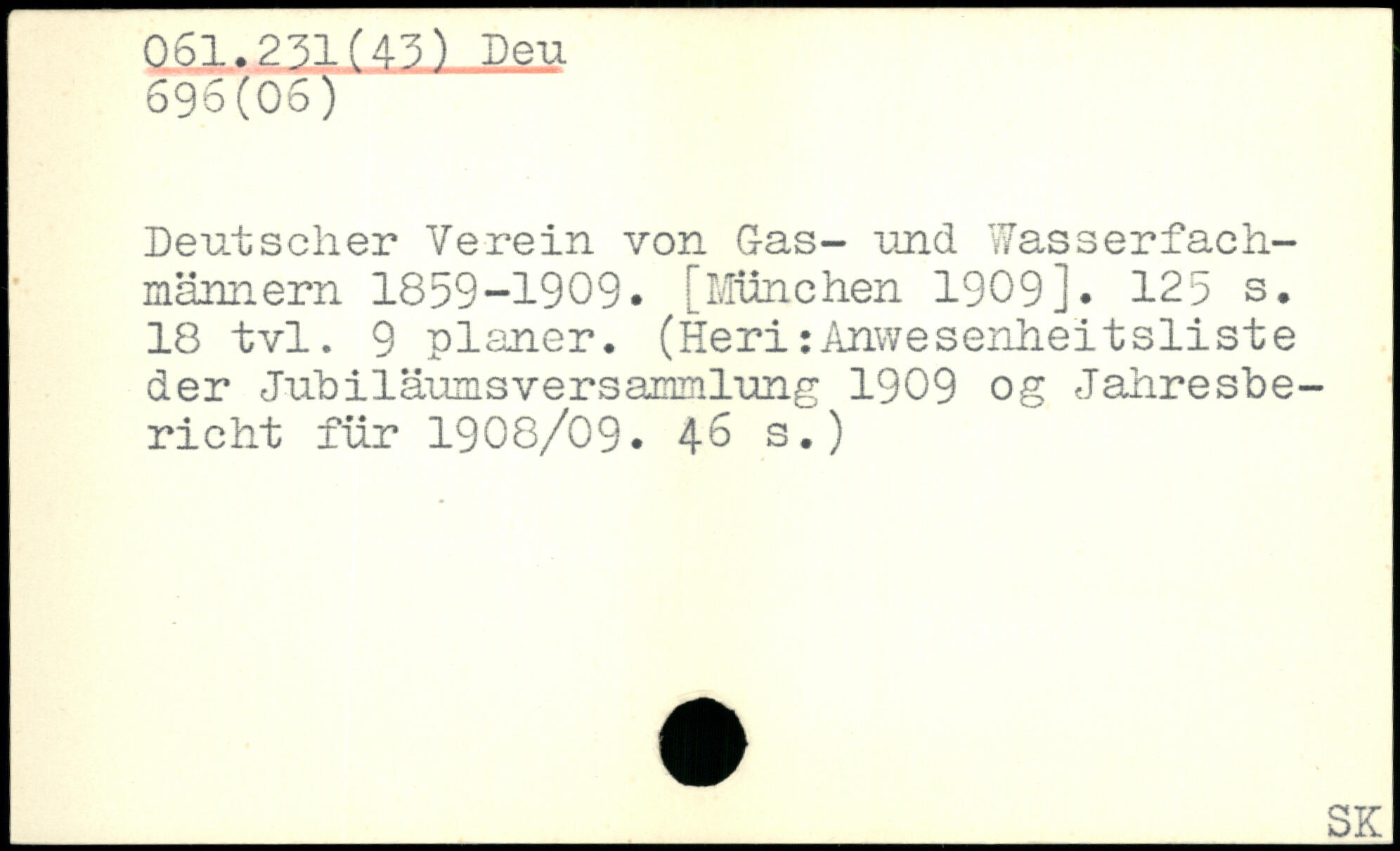 Deutscher Verein von Gas- und Wasserfachmännern 1859-1909.
