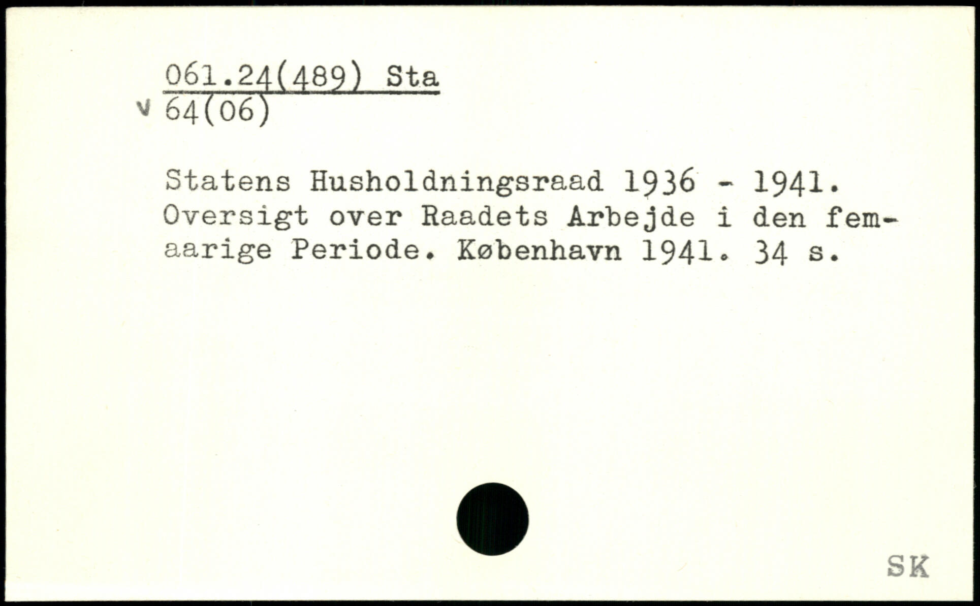 Statens Husholdningsraad 1936 - 1941. Oversigt over Raadets Arbejde i den fem-aarige Periode.