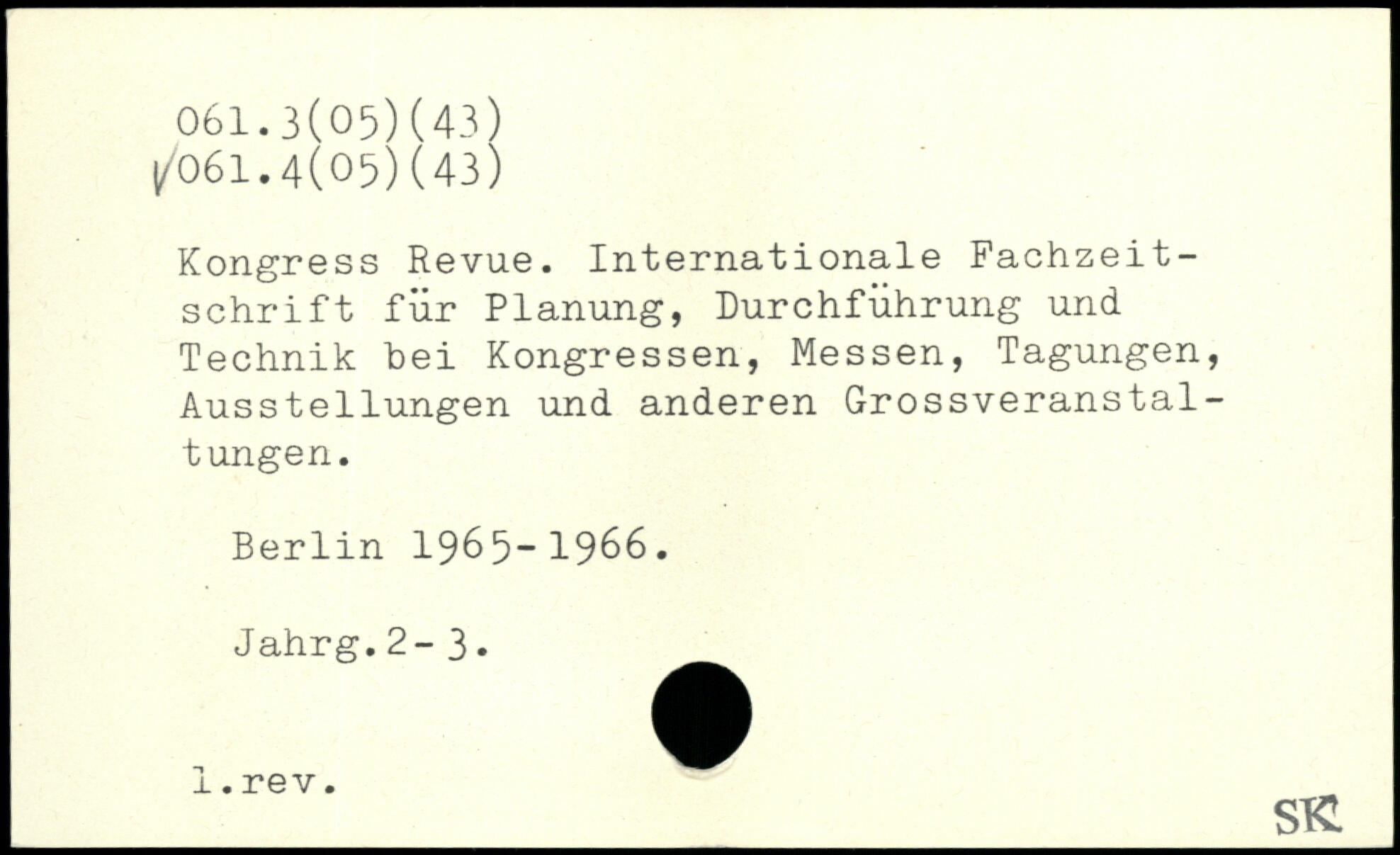 Kongress Revue. Internationale Fachzeitschrift für Planung, Durchführung und Technik bei Kongressen, Messen, Tagungen, Ausstellungen und anderen Grossveranstaltungen.