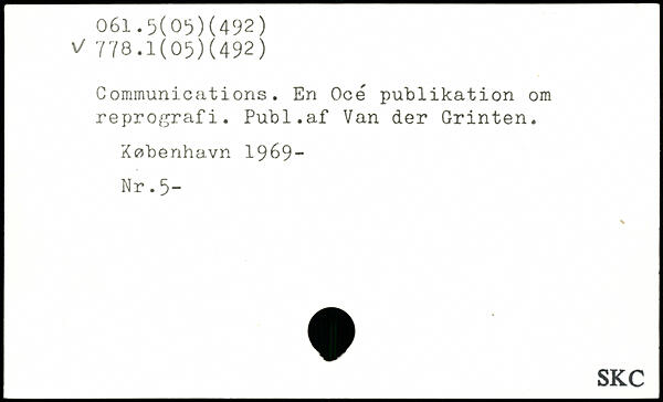 Communications. En Océ publikation om reprografi. Publ.af Van der Grinten.