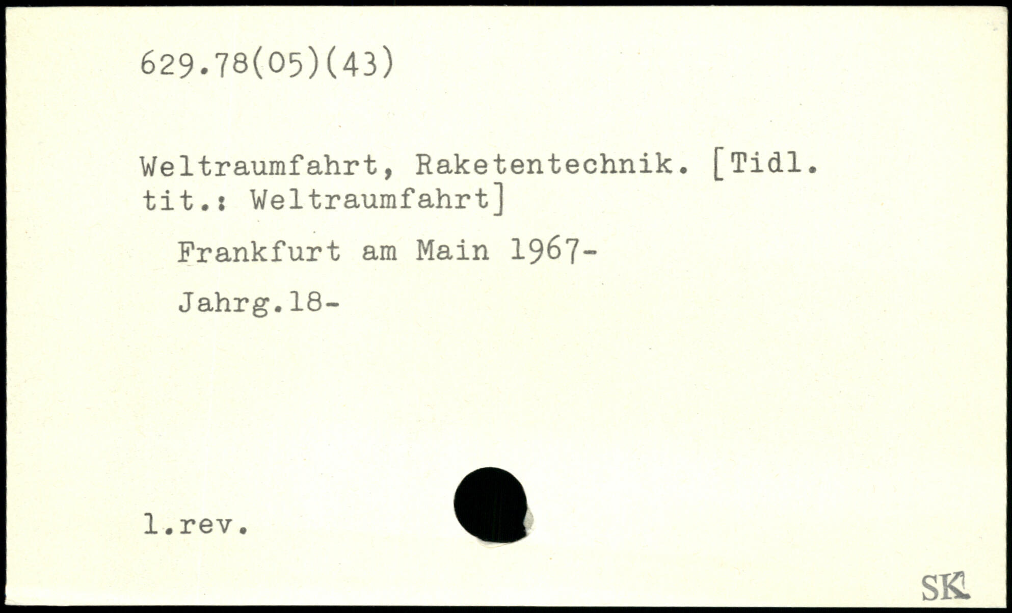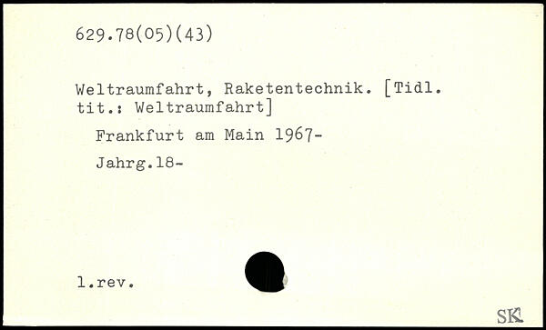 Weltraumfahrt, Raketentechnik. [Tidl. tit.: Weltraumfahrt]