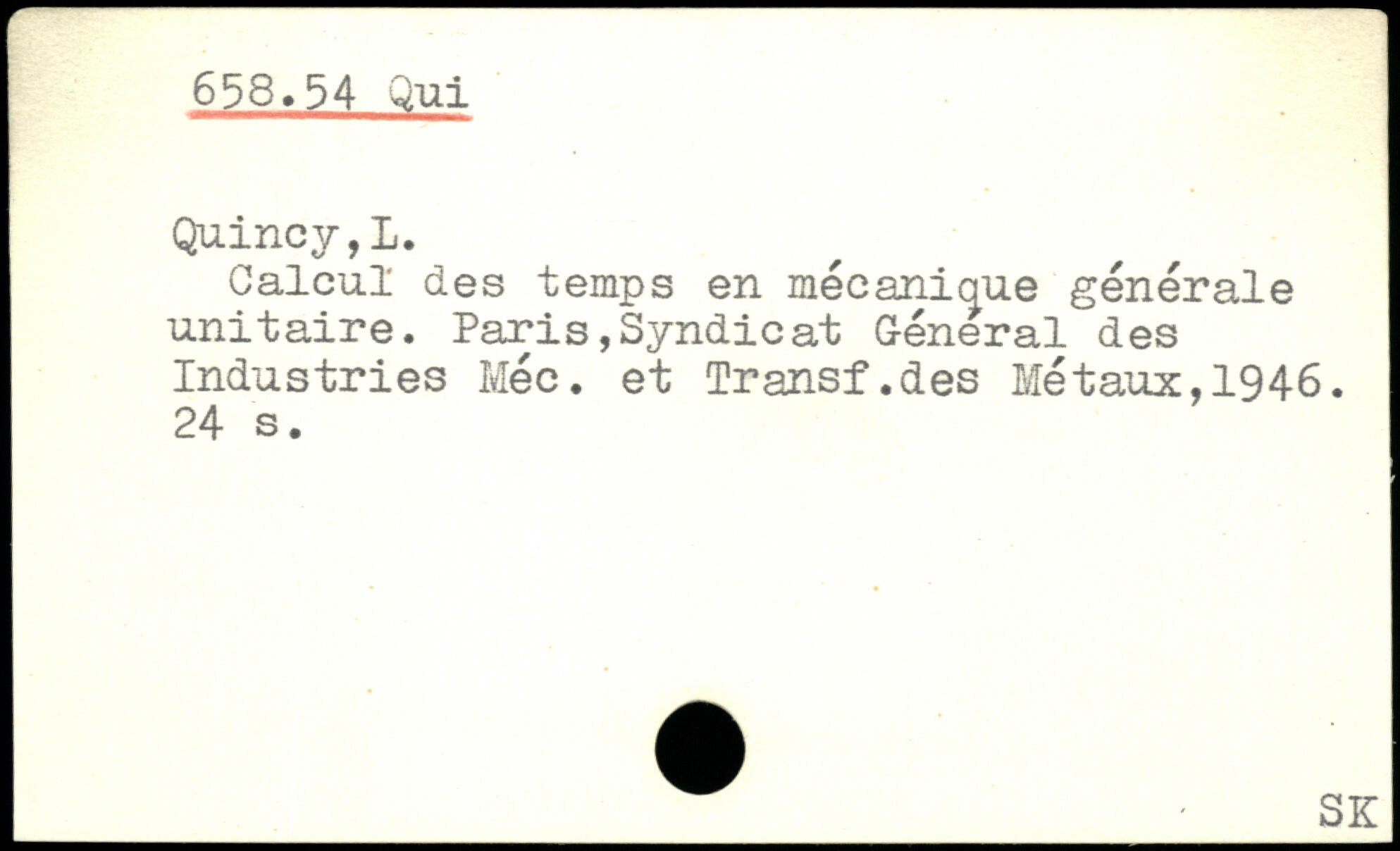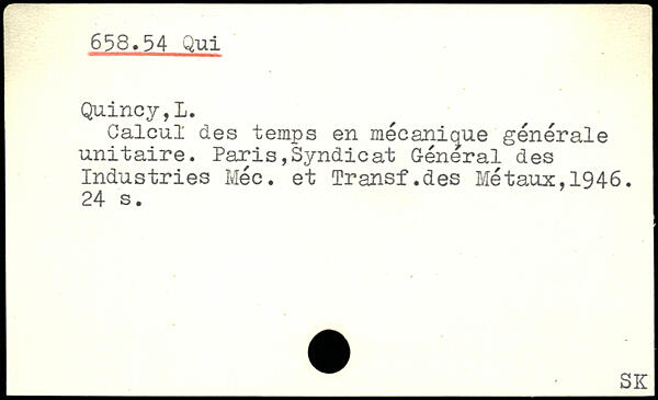 Calcul des temps en mécanique générale unitaire. Paris,Syndicat Général des Industries Méc. et Transf.des Métaux,1946.