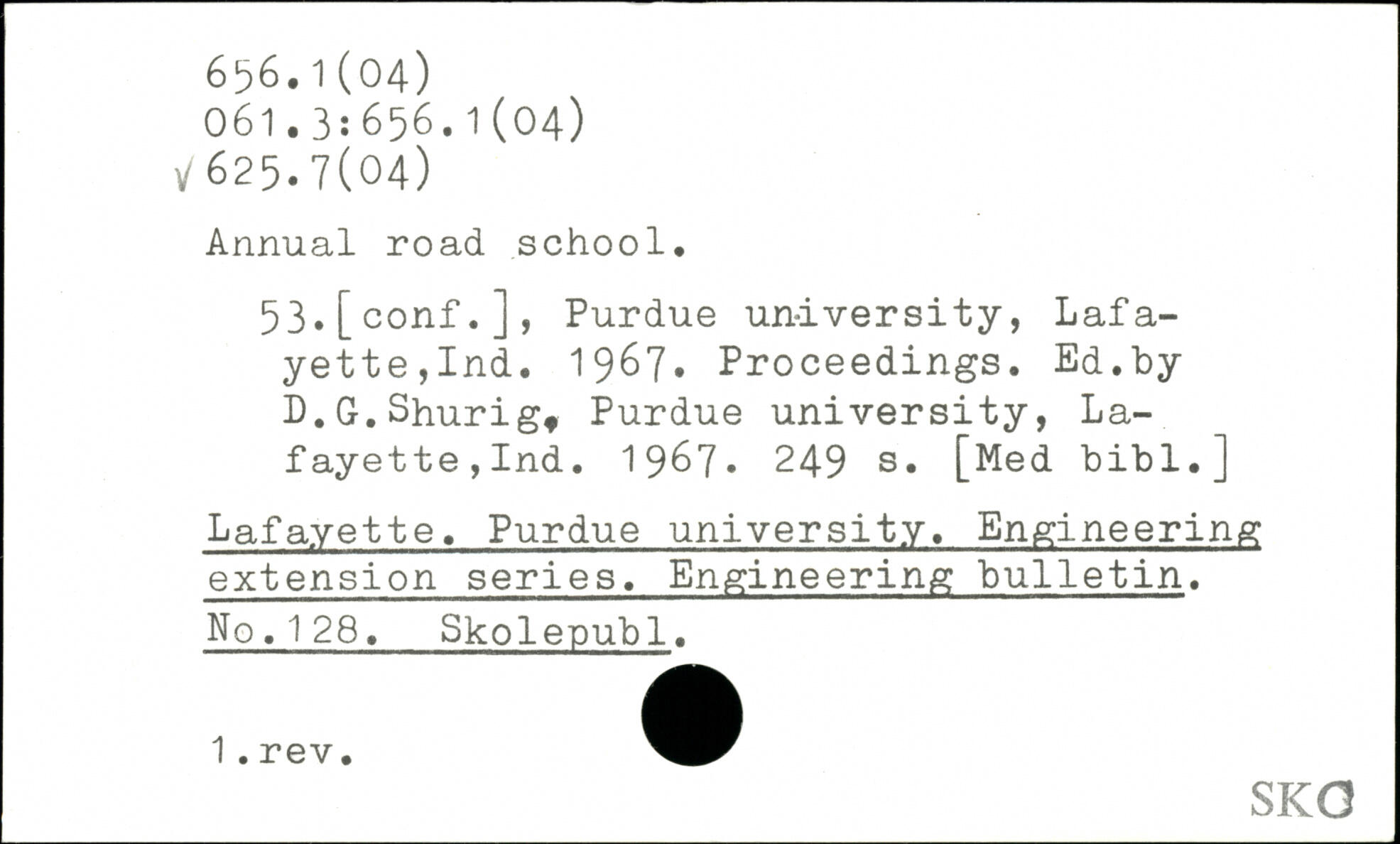 Annual road school. 53,[conf.], Purdue university, Lafa-yette,Ind. 1967, Proceedings. Ed.by D.G.Shurig. Purdue university, Lafayette, Ind. 1967.