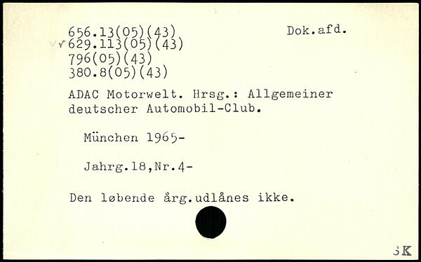 ADAC Motorwelt. Hrsg.: Allgemeiner deutscher Automobil-Club. München 196 9“ Jahrg.18,Nr.4- Den løbende arg.udlånes ikke.
