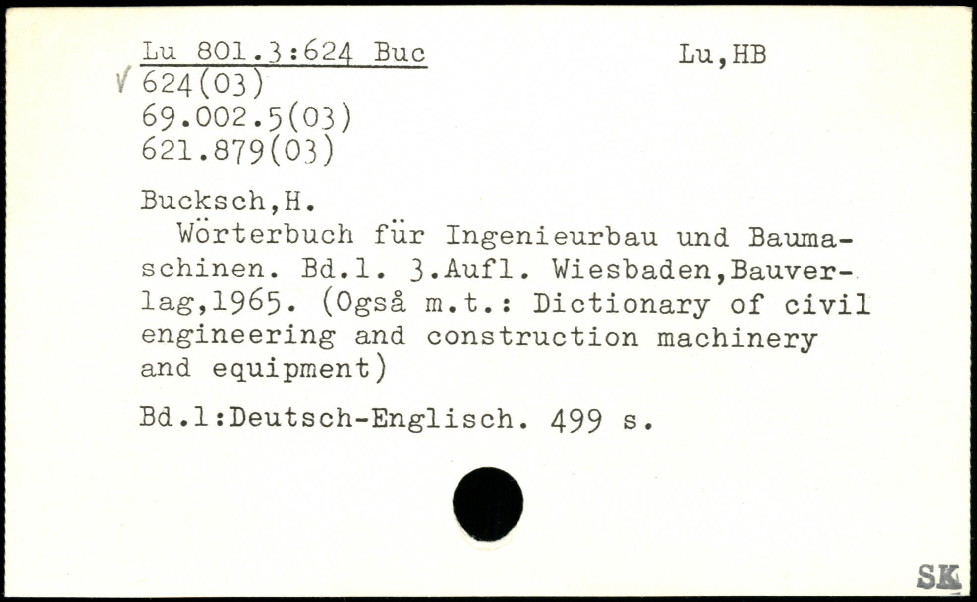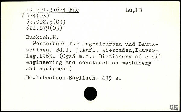 Wörterbuch für Ingenieurbau ‘und Baumaschinen. Bd.l.