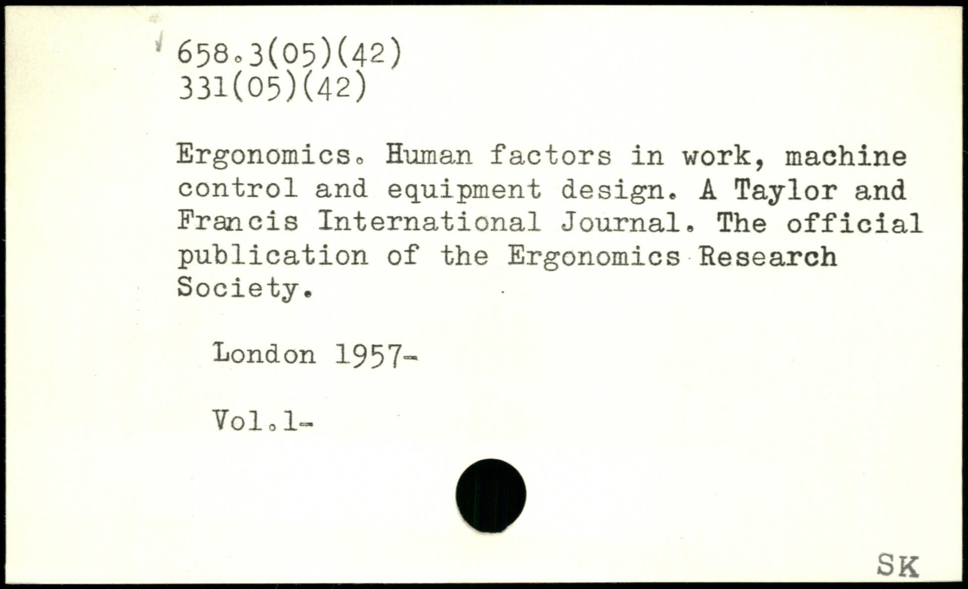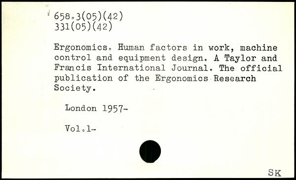 Ergonomicso Human factors in work, machine control and equipment design. A Taylor and Francis International Journal. The official publication of the Ergonomics Research Society.