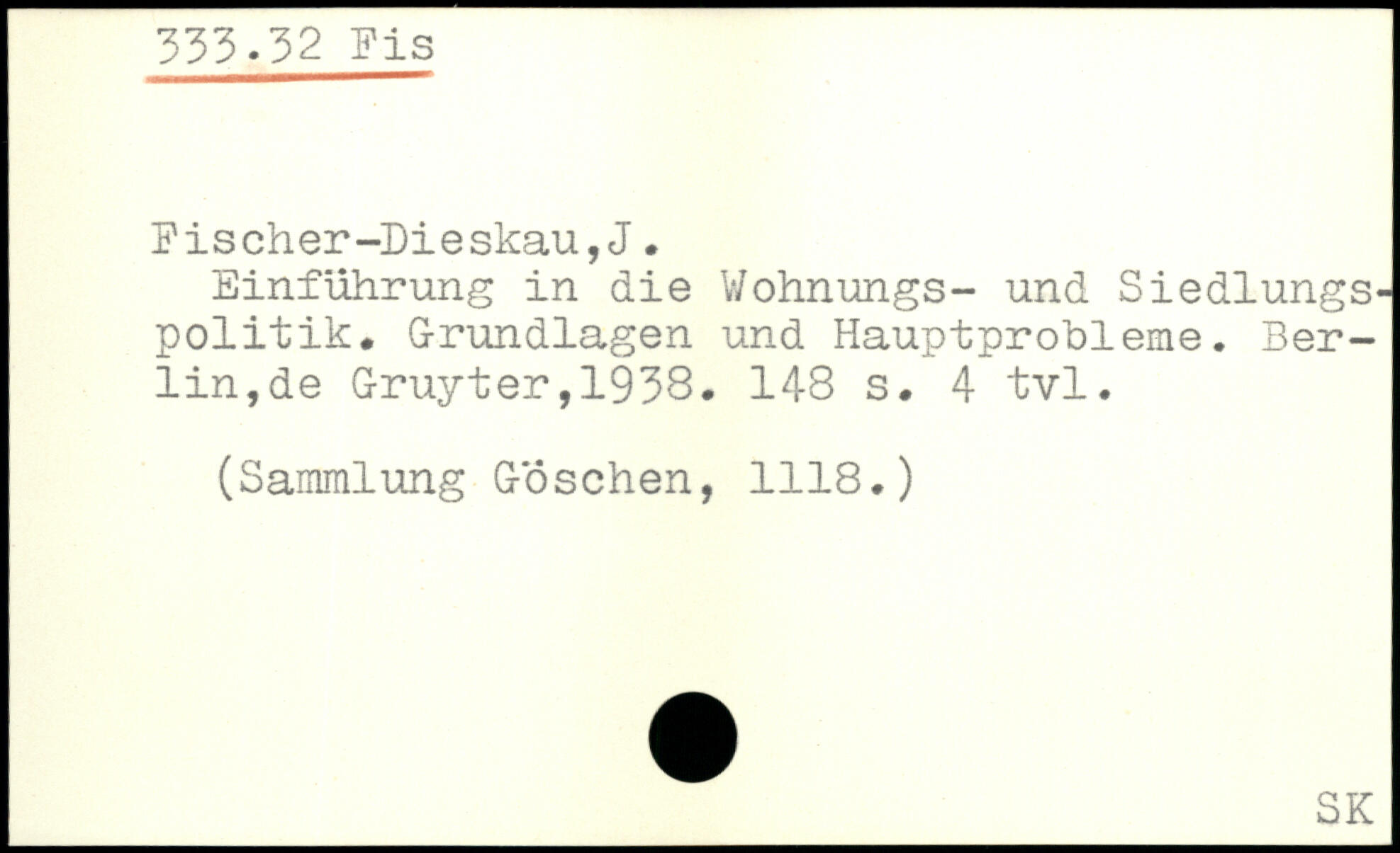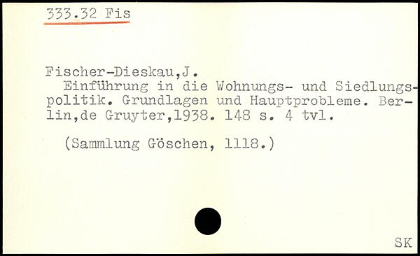 Einführung in die Wohnungs- und Siedlungspolitik. Grundlagen und Hauptprobleme. Berlin, de Gruyter,1938.