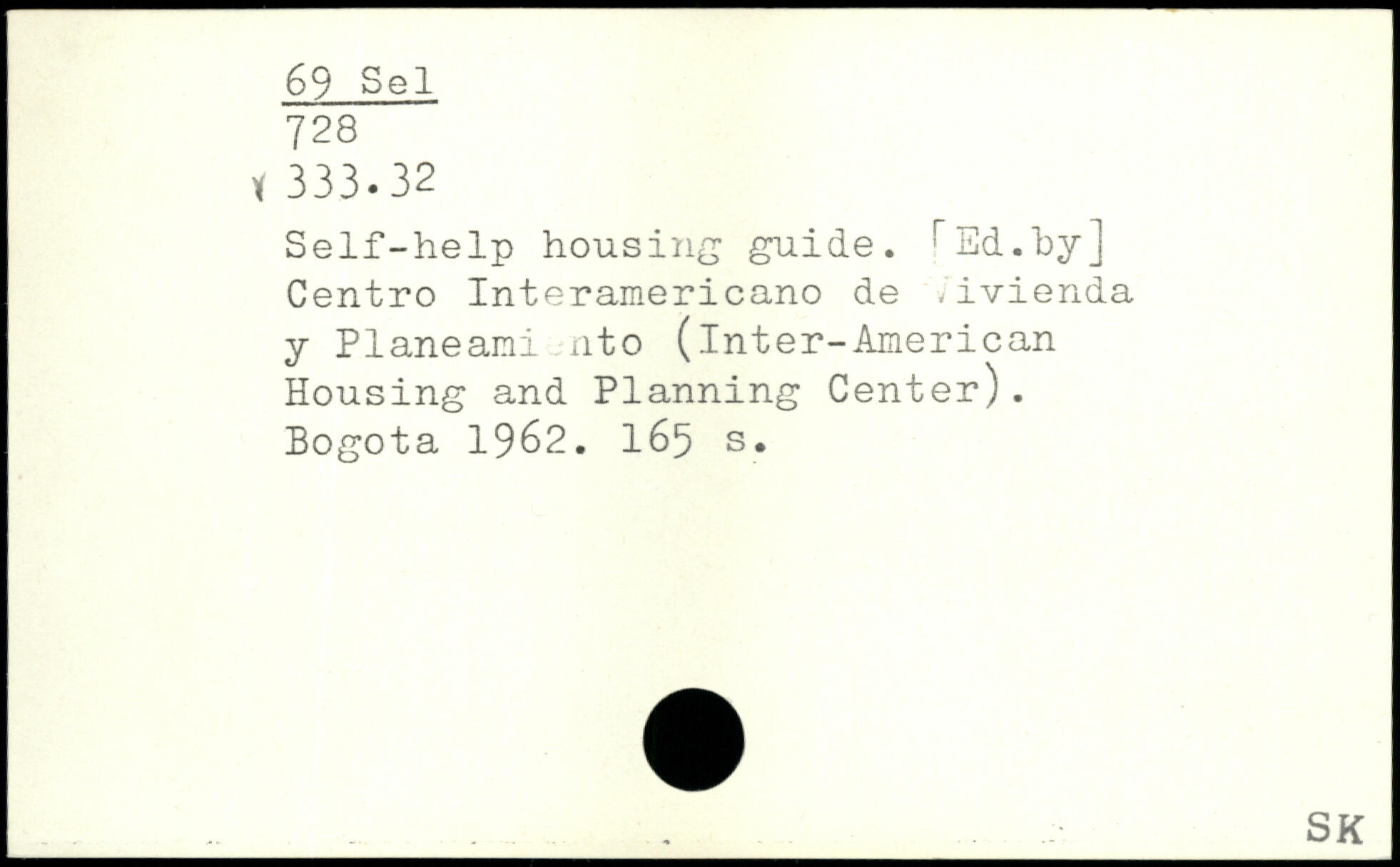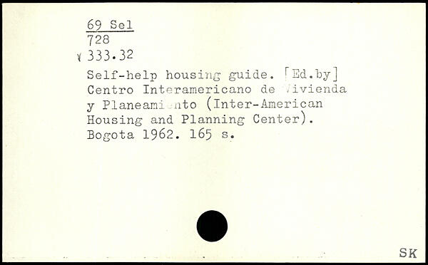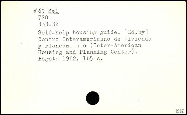 Self-help housing guide. ^Ed.by] Centro Interamericano de ,ivienda y Planeami nto (Inter-American Housing and Planning Center). Bogota 1962.