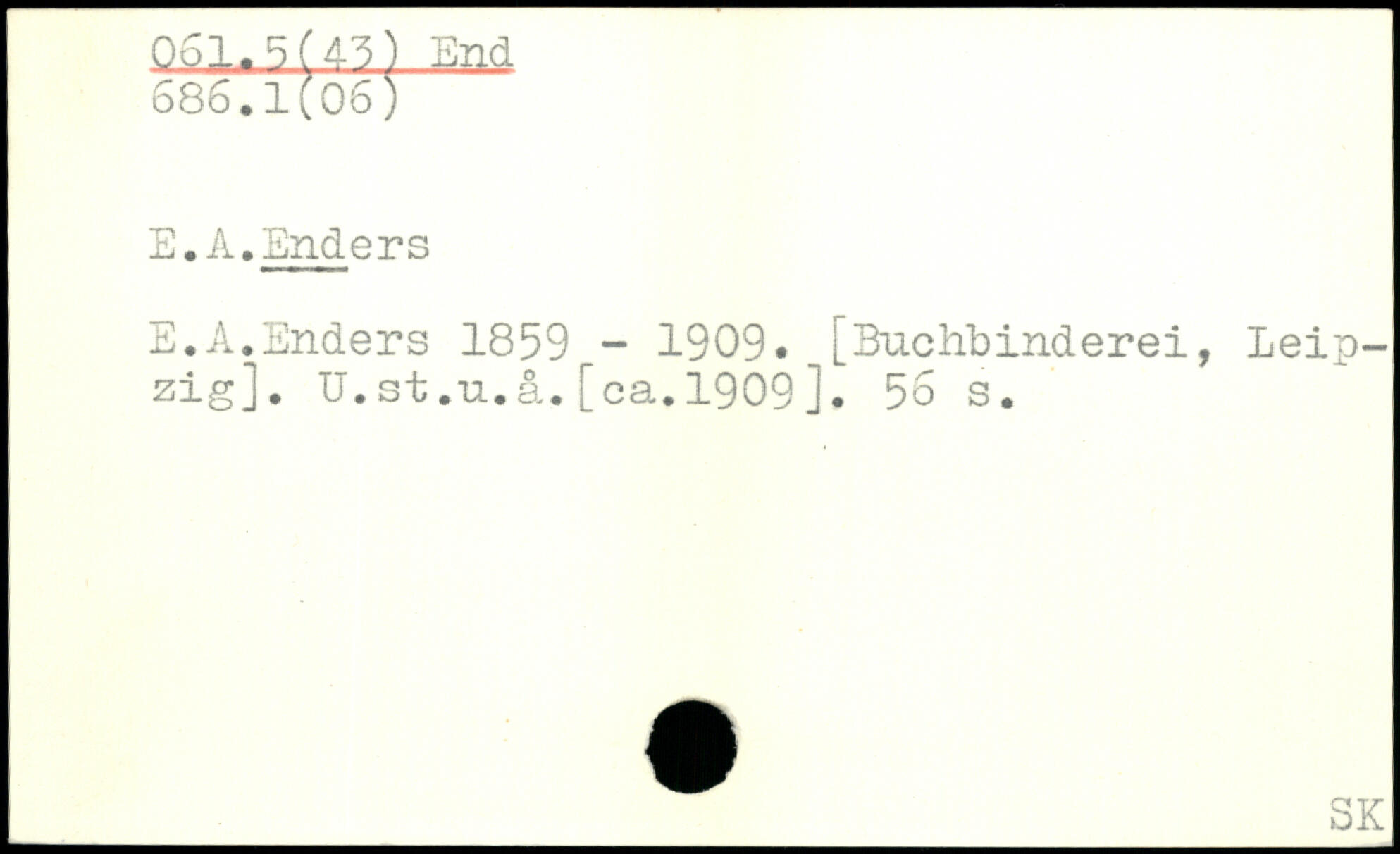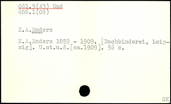 E.A.Enders 1859 - 1909. [Buclibinderei, Leip-zig]. U.st.u.å.[ca.1909].