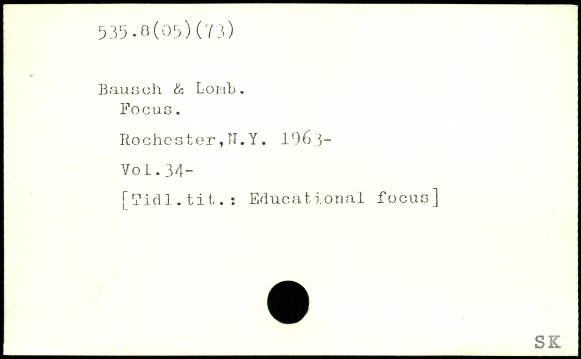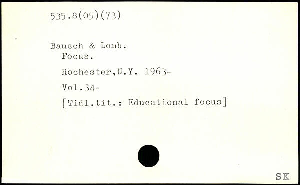 Bausch & Lo mb. Focus. Rochester, II. Y. 1963-