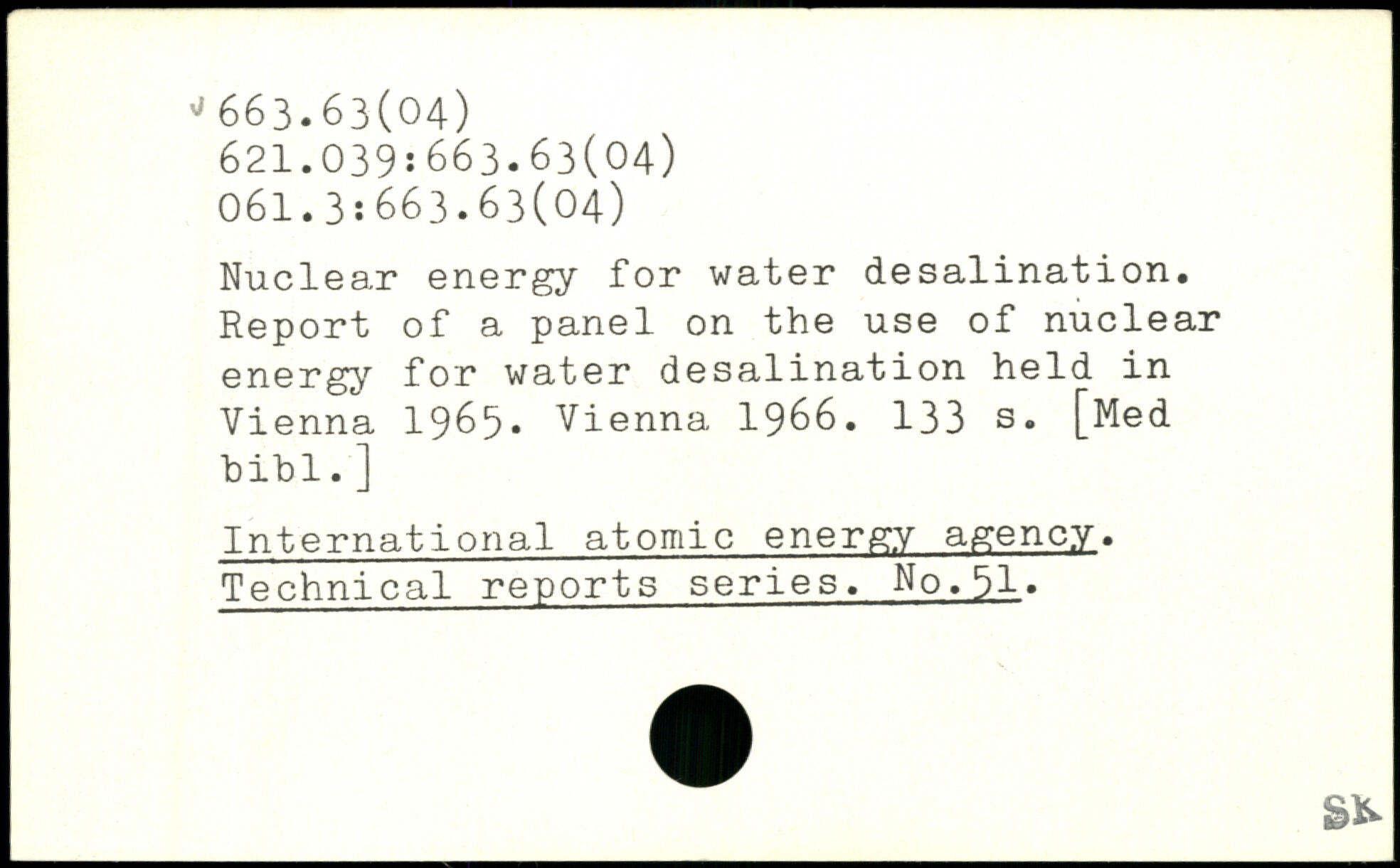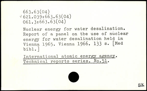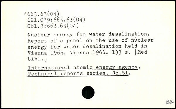 Nuclear energy for water desalination. Report of a panel on the use of nuclear energy for water desalination held in Vienna 1965. Vienna 1966.