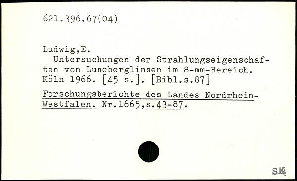Untersuchungen der Strahlungseigenschaf-ten von Luneberglinsen im 8-mm-Bereich.