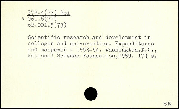 Scientific research and development in colleges and universities. Expenditures and manpower - 1953-54, Washington,D,C.9 National Science Foundation,1959