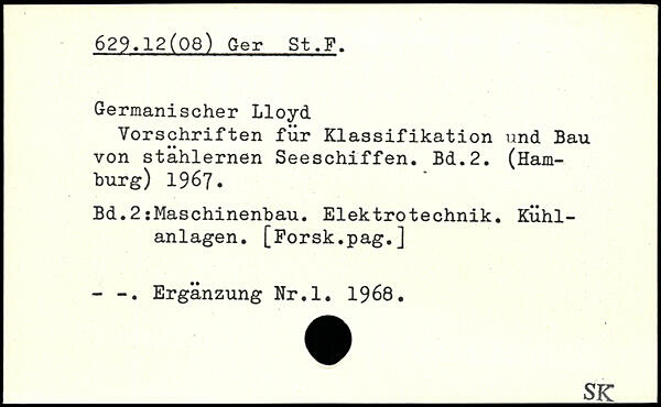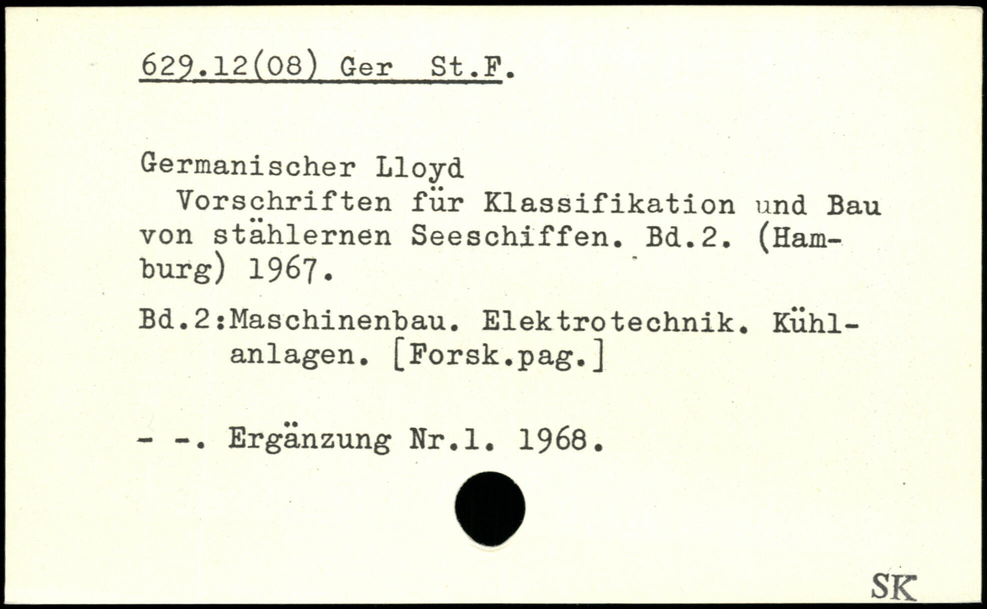 Germanischer Lloyd Vorschriften für Klassifikation und Bau von stählernen Seeschiffen.