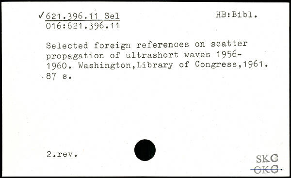Selected foreign references on scatter propagation of ultrashort waves 1956-1960.