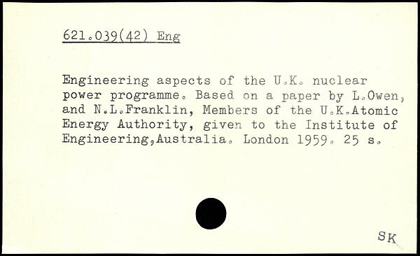 Engineering aspects of the UaKo nuclear power programmée Based on a paper by LoOwen, and N,L0Franklin, Members of the UeKeAtomic Energy Authority, given to the Institute of Engineering?Australia.