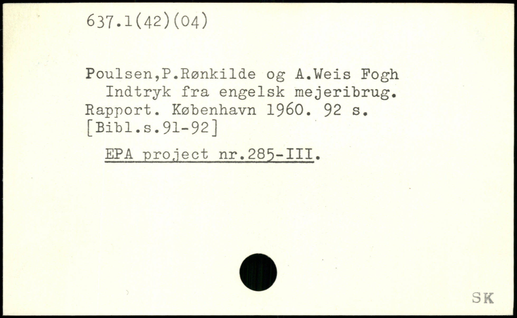 Poulsen,P.Rønkilde og A.Weis Fogh Indtryk fra engelsk mejeribrug. Rapport.