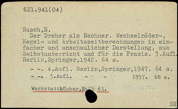 Der Dreher als Rechner. Y/echselräder-, Kegel- und Arbeitszeitberechnungen in einfacher und anschaulicher Darstellung, zum Selbstunterricht und für die Praxis.