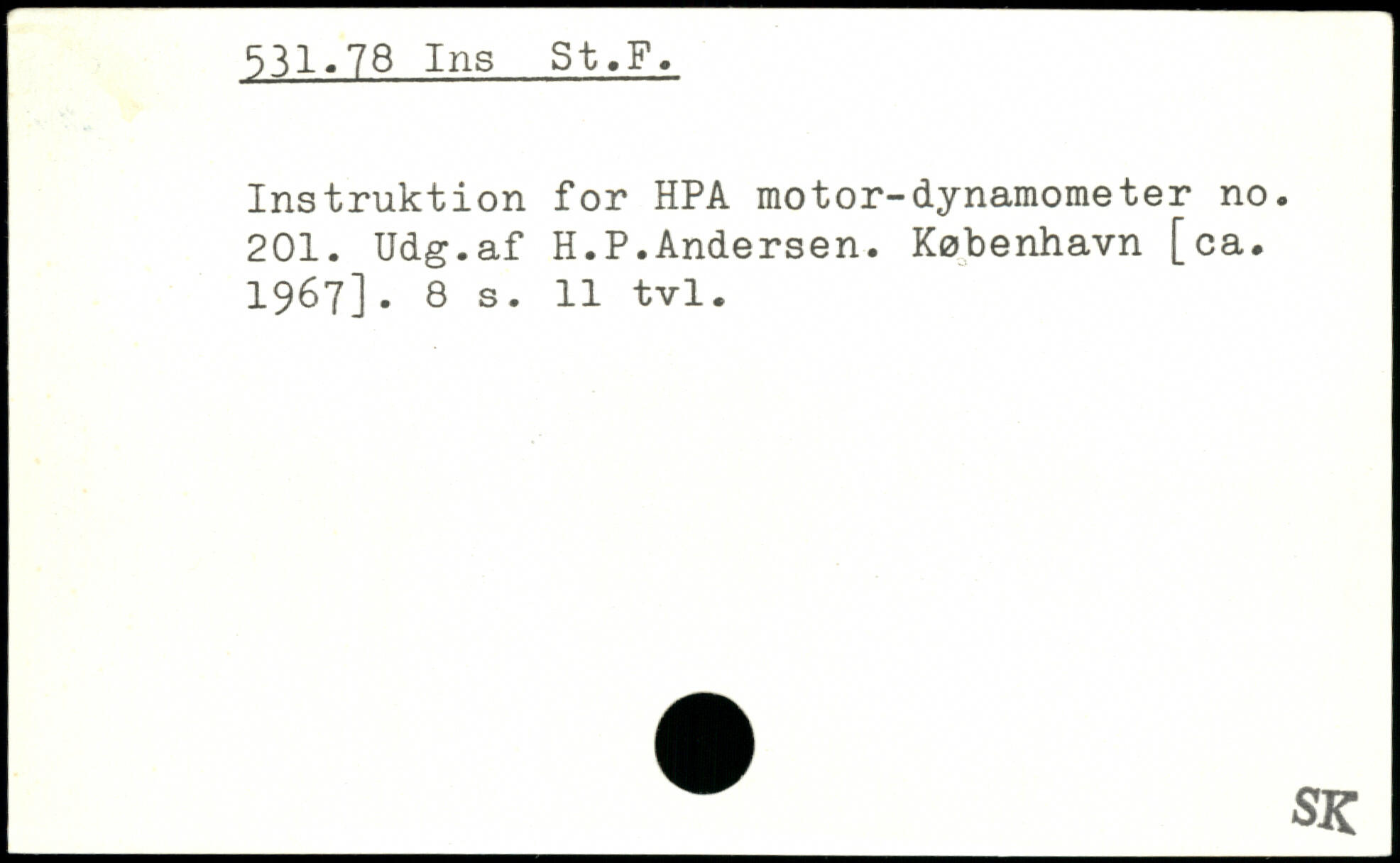 Instruktion for HPA motor-dynamometer no. 201. Udg.af H.P.Andersen. København [ca. 1967].