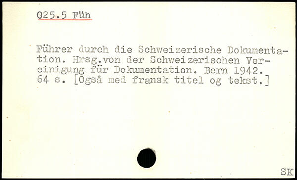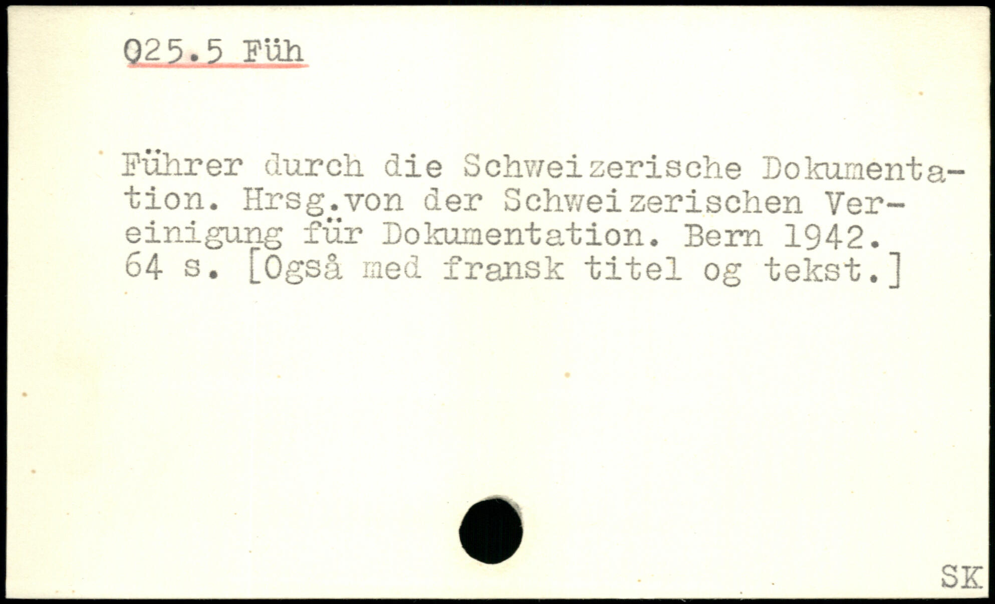 Führer durch die Schweizerische Dokumentation. Hrsg.von der Sehweizerisehen Vereinigung für Dokumentation.