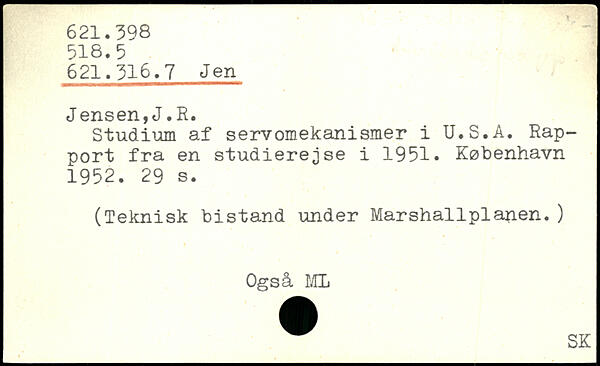 Studium af servomekanismer i U.S.A. Rapport fra en studierejse i 1951.