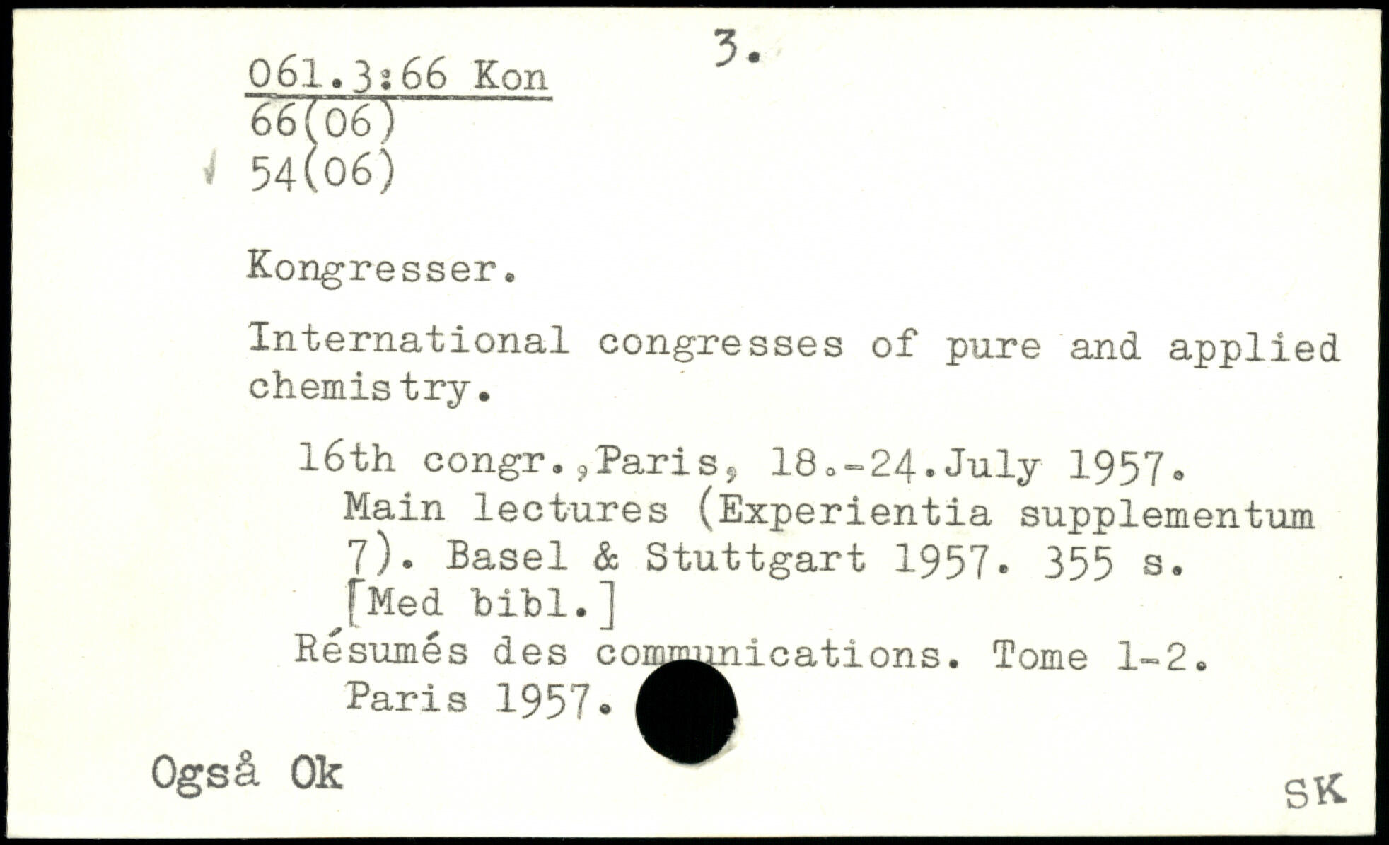 International congresses of pure and applied chemistry, 16th congr.?Pariss 18,-24.July 1957. Main lectures (Experientia supplementum 7). Basel &