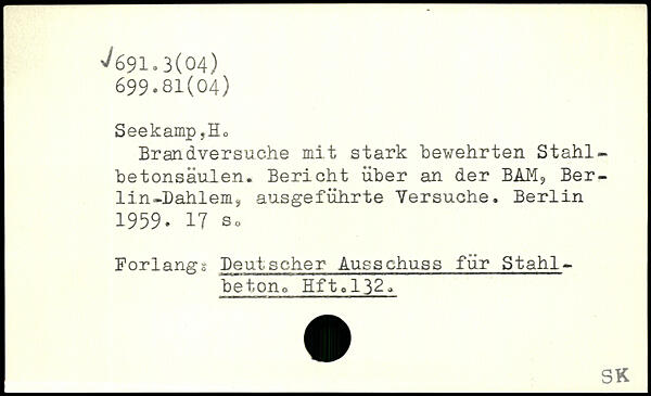 Brandversuche mit stark "bewehrten Stahlbetonsäulen. Bericht über an der BAM, Berlin-Dahlem, ausgeführte Yersuche.
