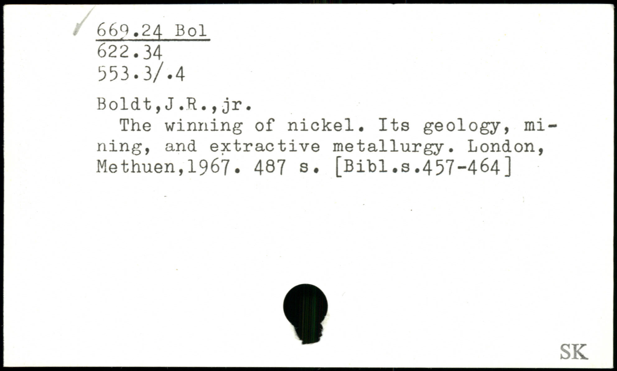 The winning of nickel. Its geology, mining, and extractive metallurgy.