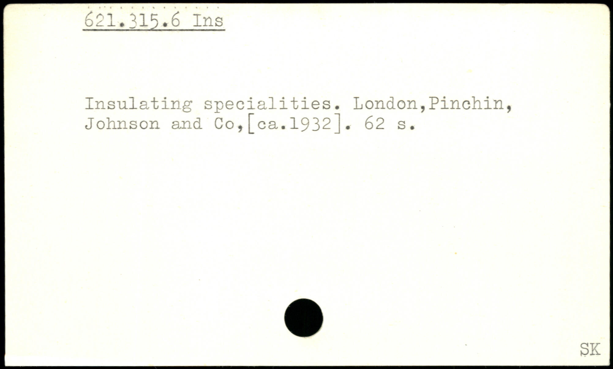Insulating specialities. London,Pinchin, Johnson and Co,[ca.1932].