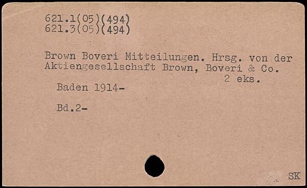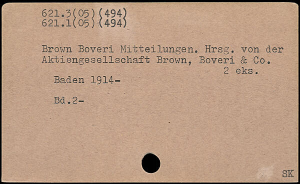 Brown Boveri Mitteilungen. Hrsg, von der Aktiengesellschaft Brown, Boveri & Co.