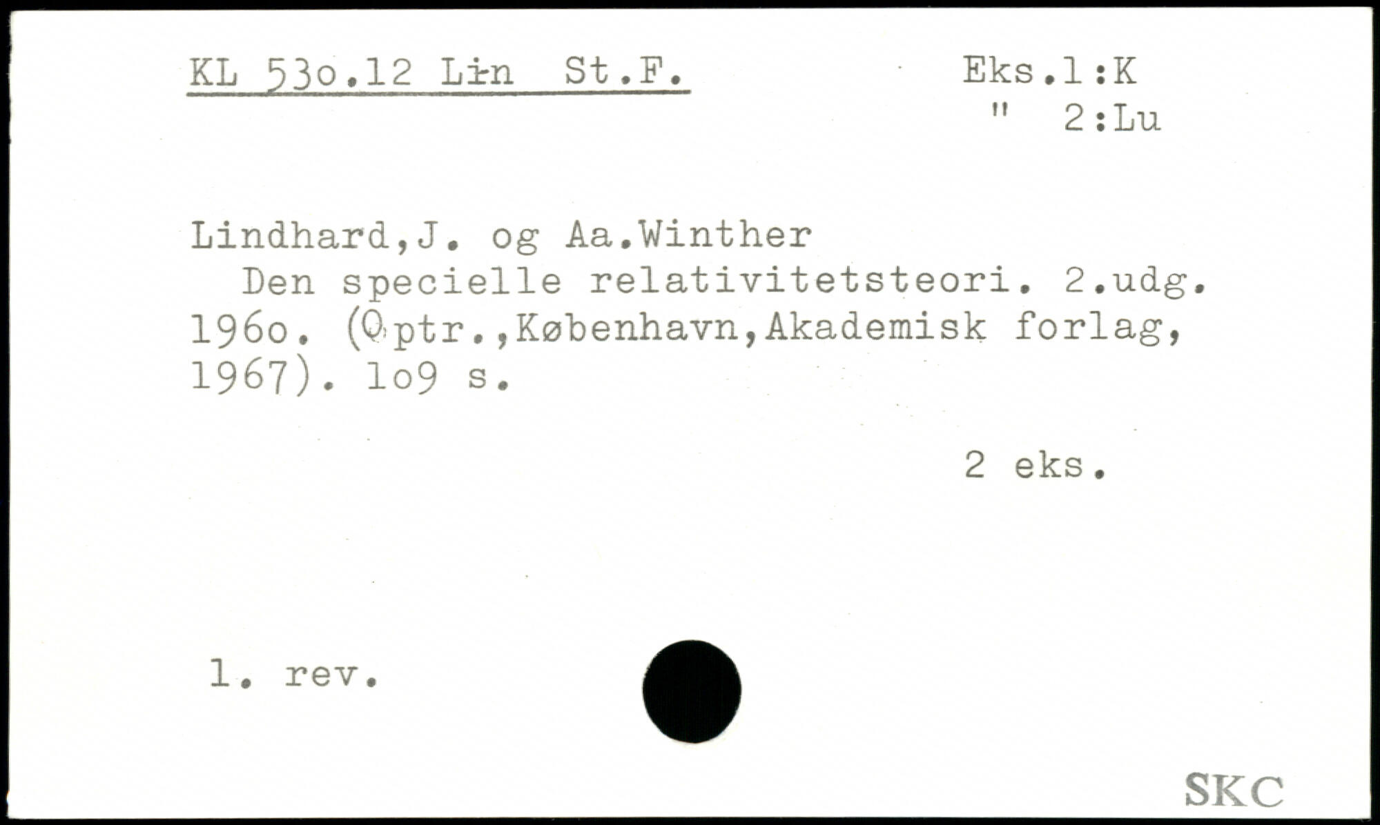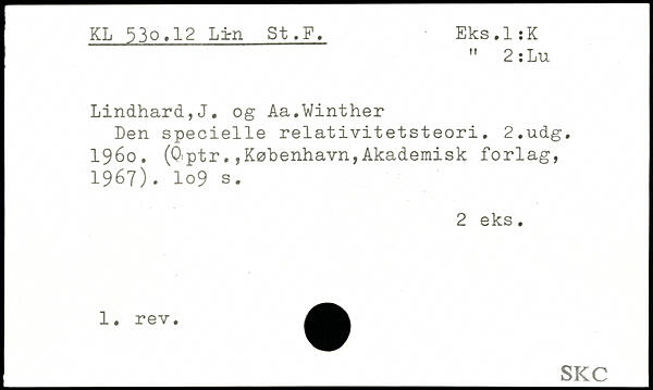 Lindhard,J. og Aa.Winther Den specielle relativitetsteori.