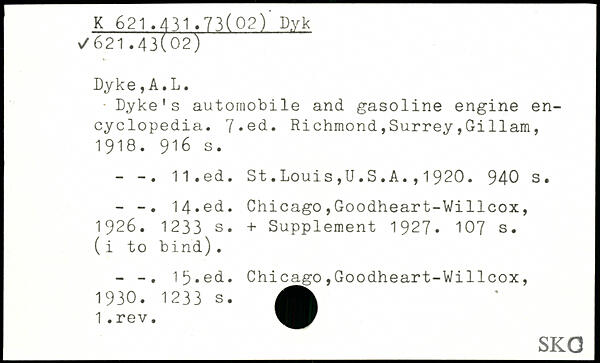 Dyke's automobile and gasoline engine encyclopedia.