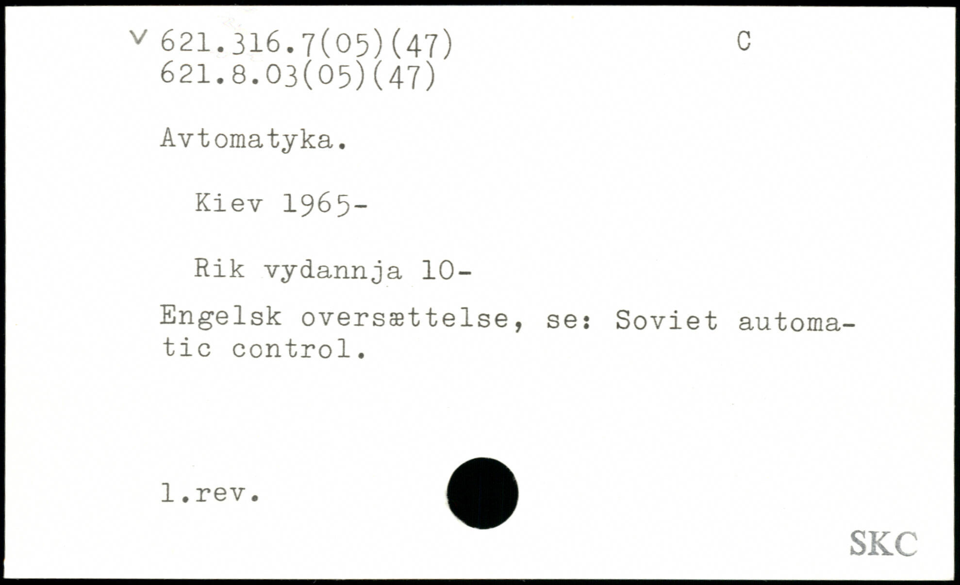 Kiev 1965-Rik vydannja 10- Engelsk oversættelse, se: Soviet automatic control.