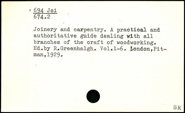 Joinery and carpentry, A practical and authoritative guide dealing with all branches of the craft of woodworking. Ed.by lUGreenhalgh. Vol,l-6.