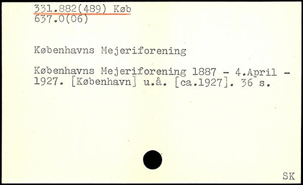 Københavns Mejeriforening Københavns Mejeriforening 1887 - 4.April -1927. [København] u.å. [ca.1927J.