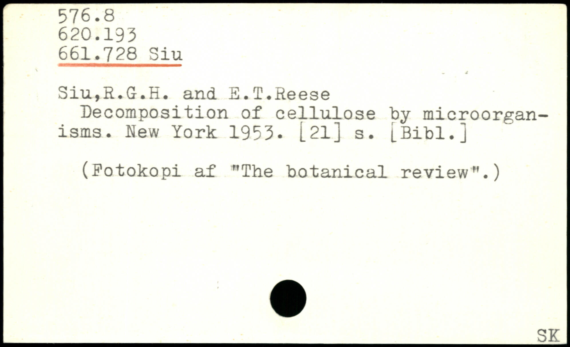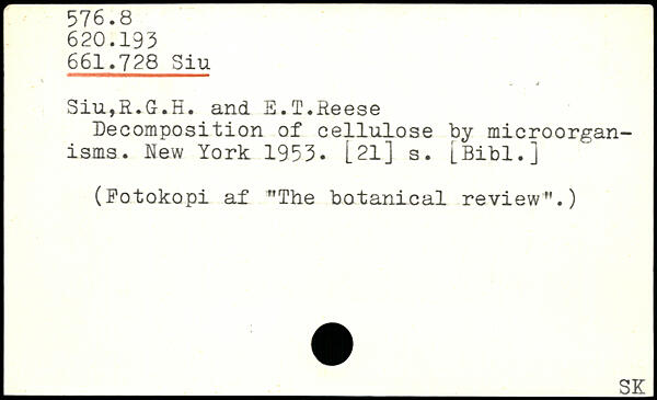 Siu,R.G.H. and S.T.fieese Decomposition of cellulose by microorgan-isms.