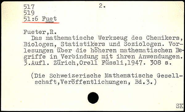 Das mathematische Werkzeug des Chemikers, Biologen, Statistikers und Soziologen. Vorlesungen über die höheren mathematischen Begriffe in Verbindung mit ihren Anwendungen. ö.Aufl.