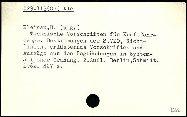 Technische Vorschriften für Kraftfahrzeuge. Bestimmungen der StVZO, Richtlinien, erläuternde Vorschriften und Auszüge aus den Begründungen in Systematischer Ordnung. 2,Aufl.