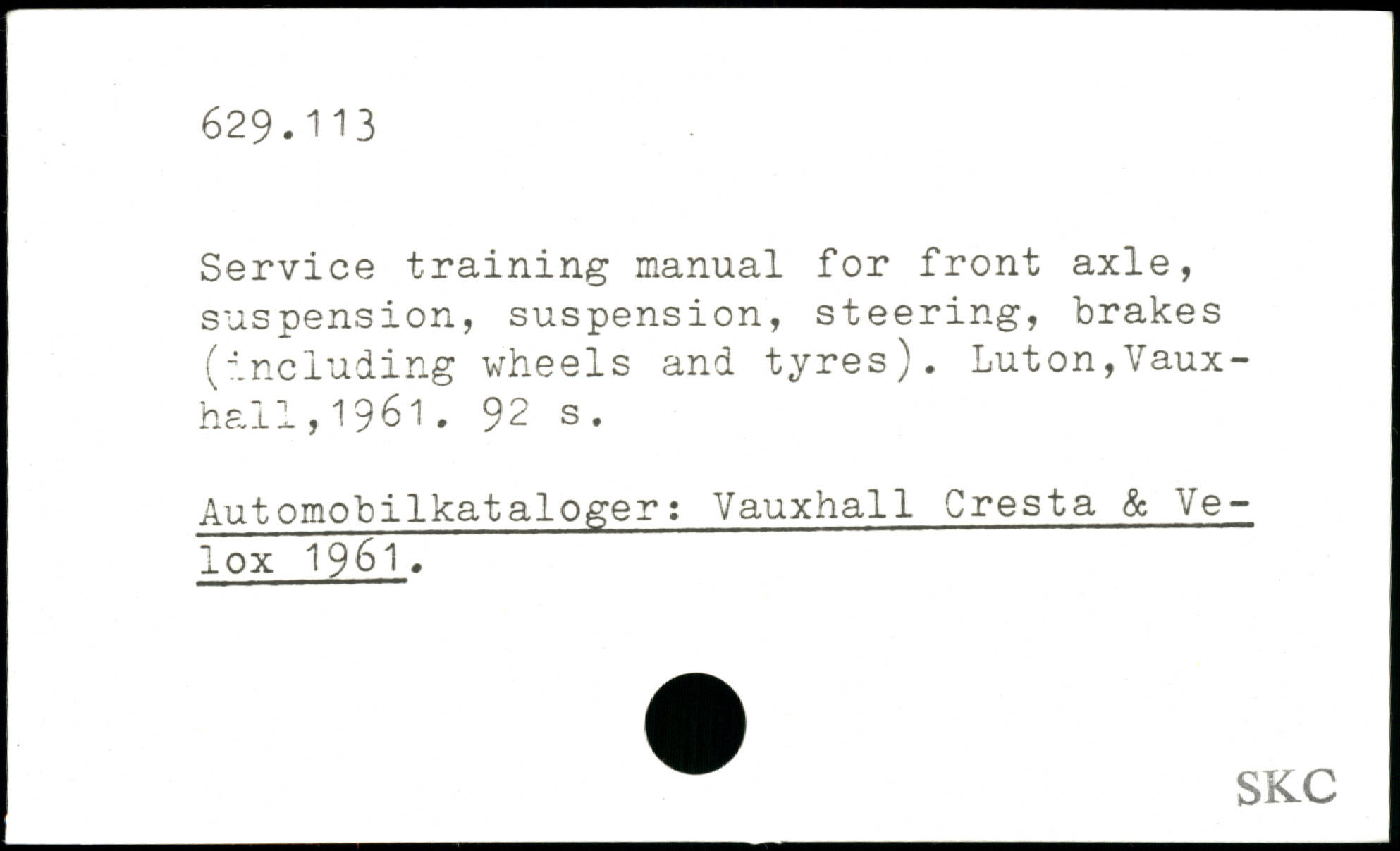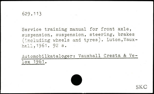 Service training manual for front axle, suspension, suspension, steering, brakes (including wheels and tyres). Luton,Vaux- hai1,1961.