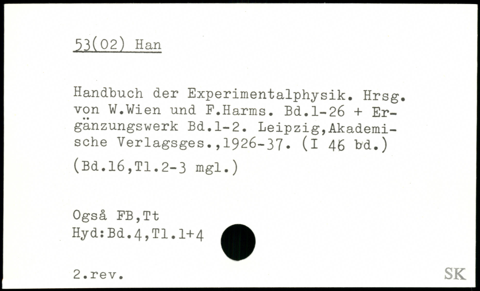 Handbuch der Experimentalphysik. Hrsg, von W.Wien und F.Harms.