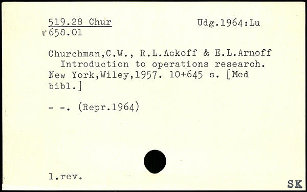 Churchman,C.W., R.L.Ackoff & E.L.Arnoff Introduction to operations research.