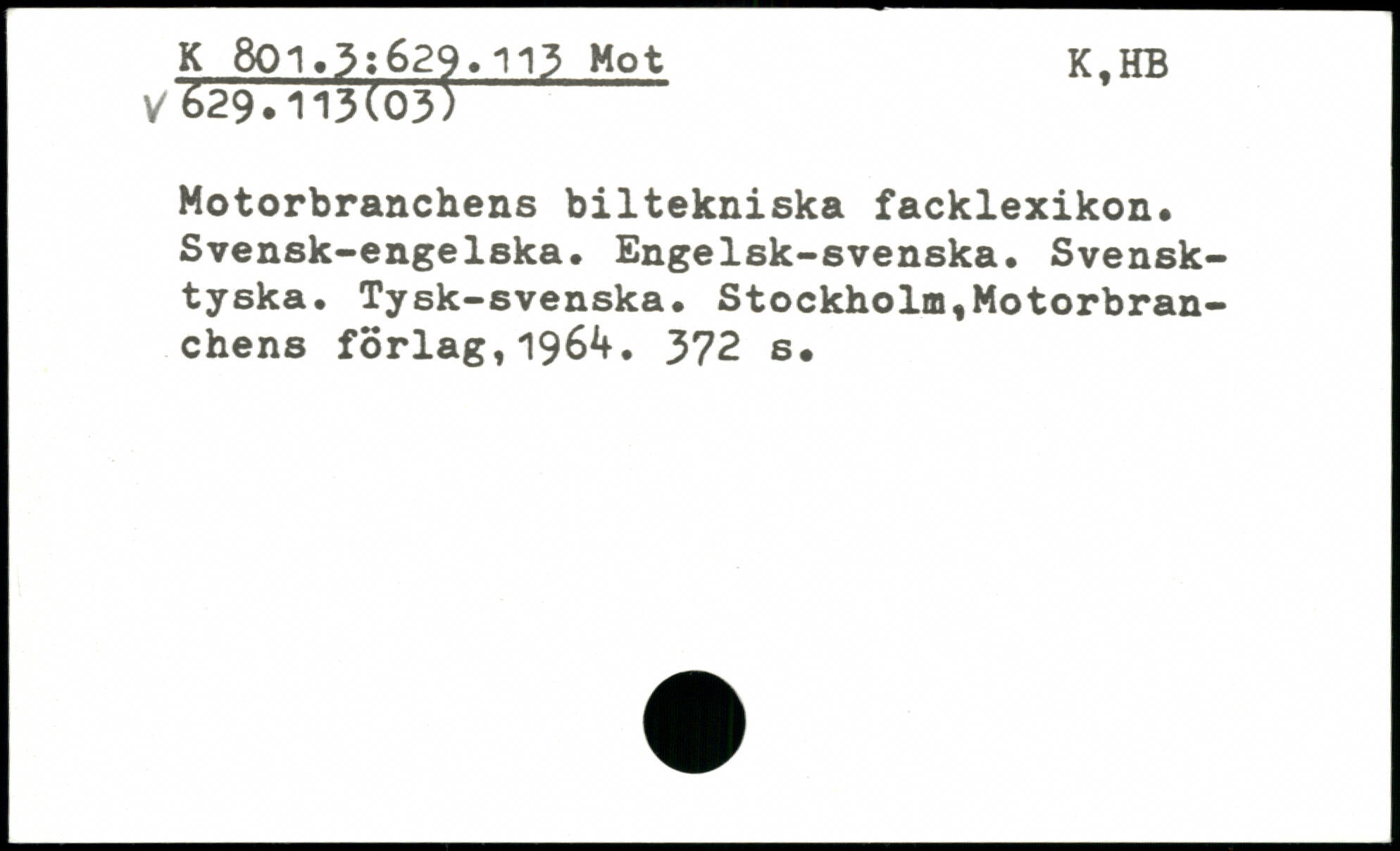 Motorbranchens biltekniska facklexikon. Svensk-engelska. Engelsk-svenska. Svensktyska. Tysk-svenska. Stockholm,Motorbranchens förlag,196^.