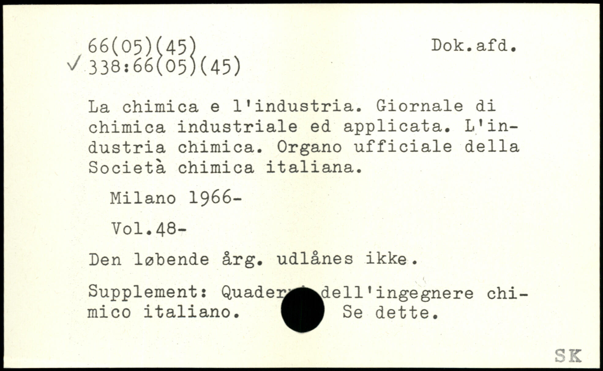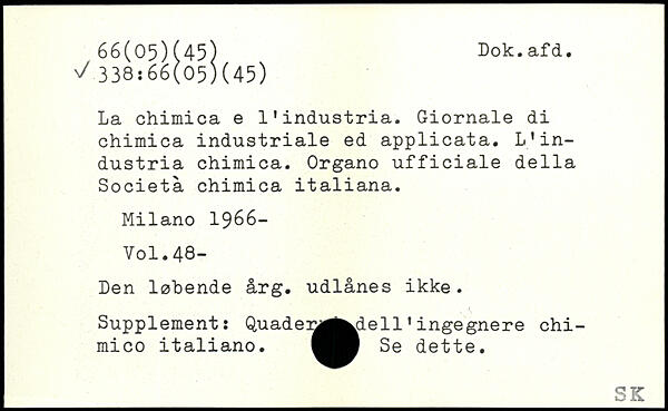 La chimica e 1’industria. Giornale di chimica industriale ed applicata. L.industria chimica. Organo ufficiale della Société chimica italiana. Milano 1966-