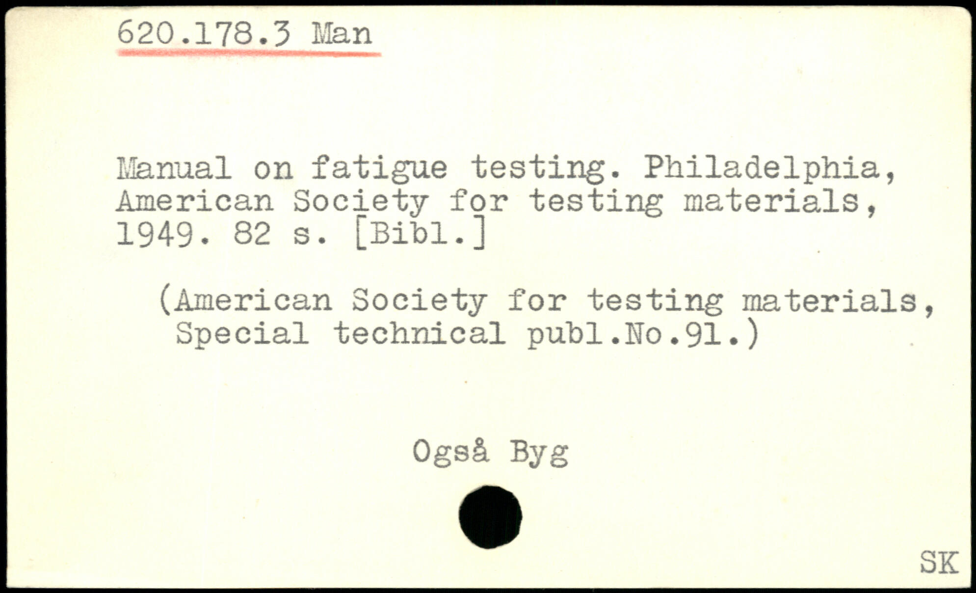Manual on fatigue testing. Philadelphia, American Society for testing materials, 1949.