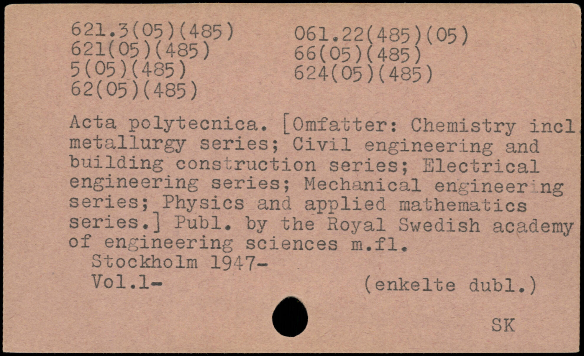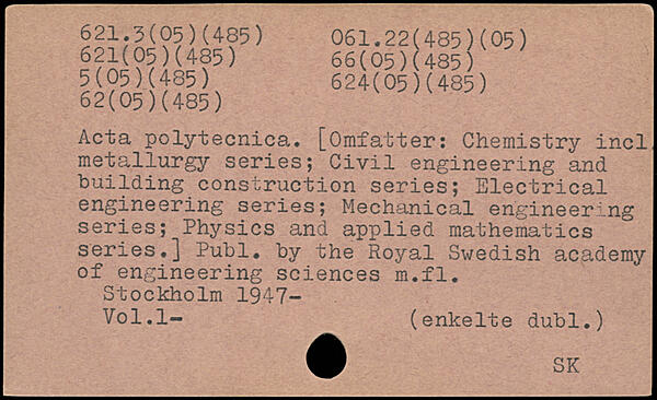 Acta polytecnica. [Omfatter: Chemistry incl metallurgy series; Civil engineering and building construction series; Electrical engineering series; Mechanical engineering series; Physics and applied mathematics series.]