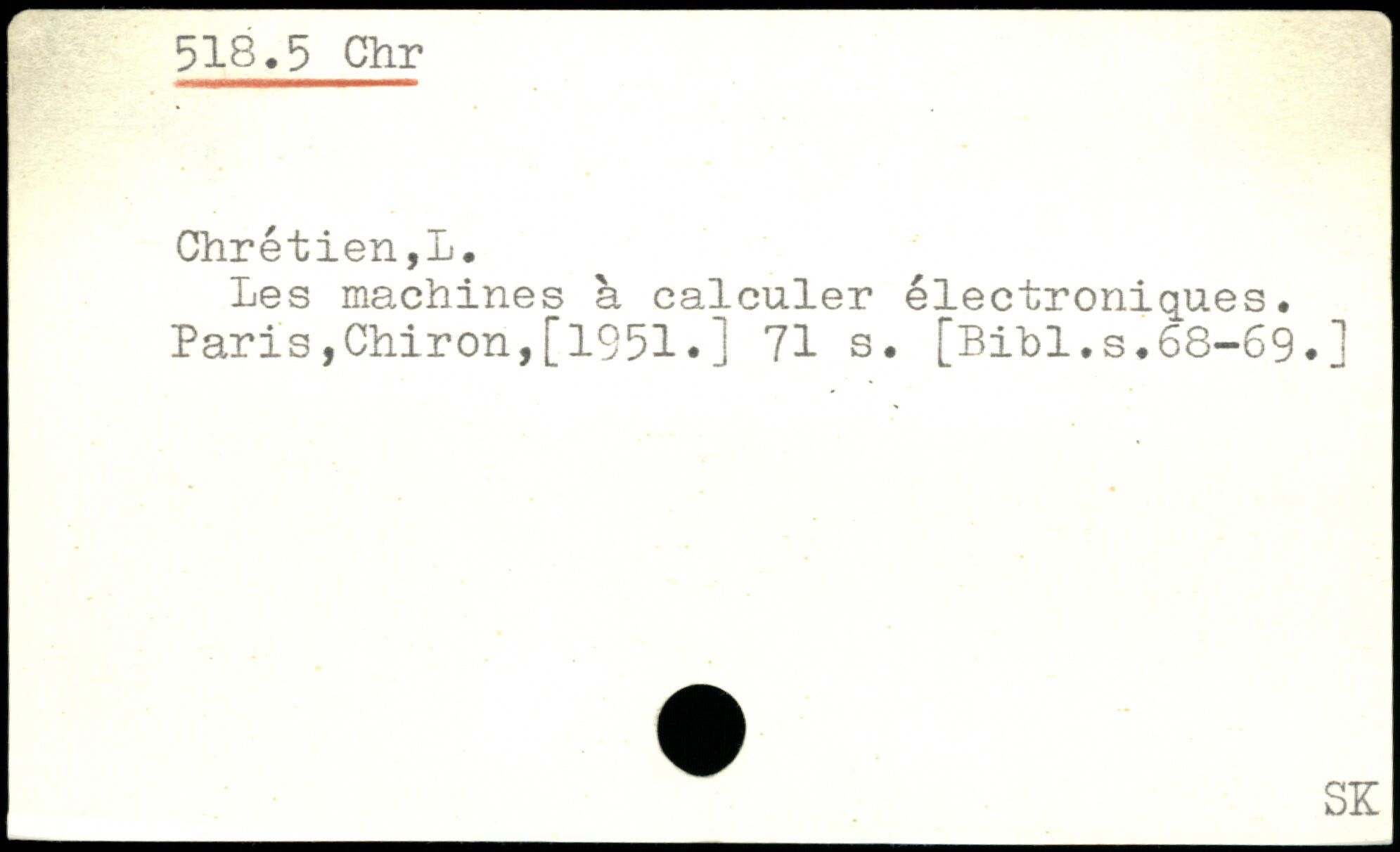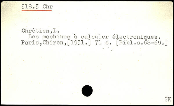 Les machines à calculer électroniques. Paris,Chiron,[1951.j